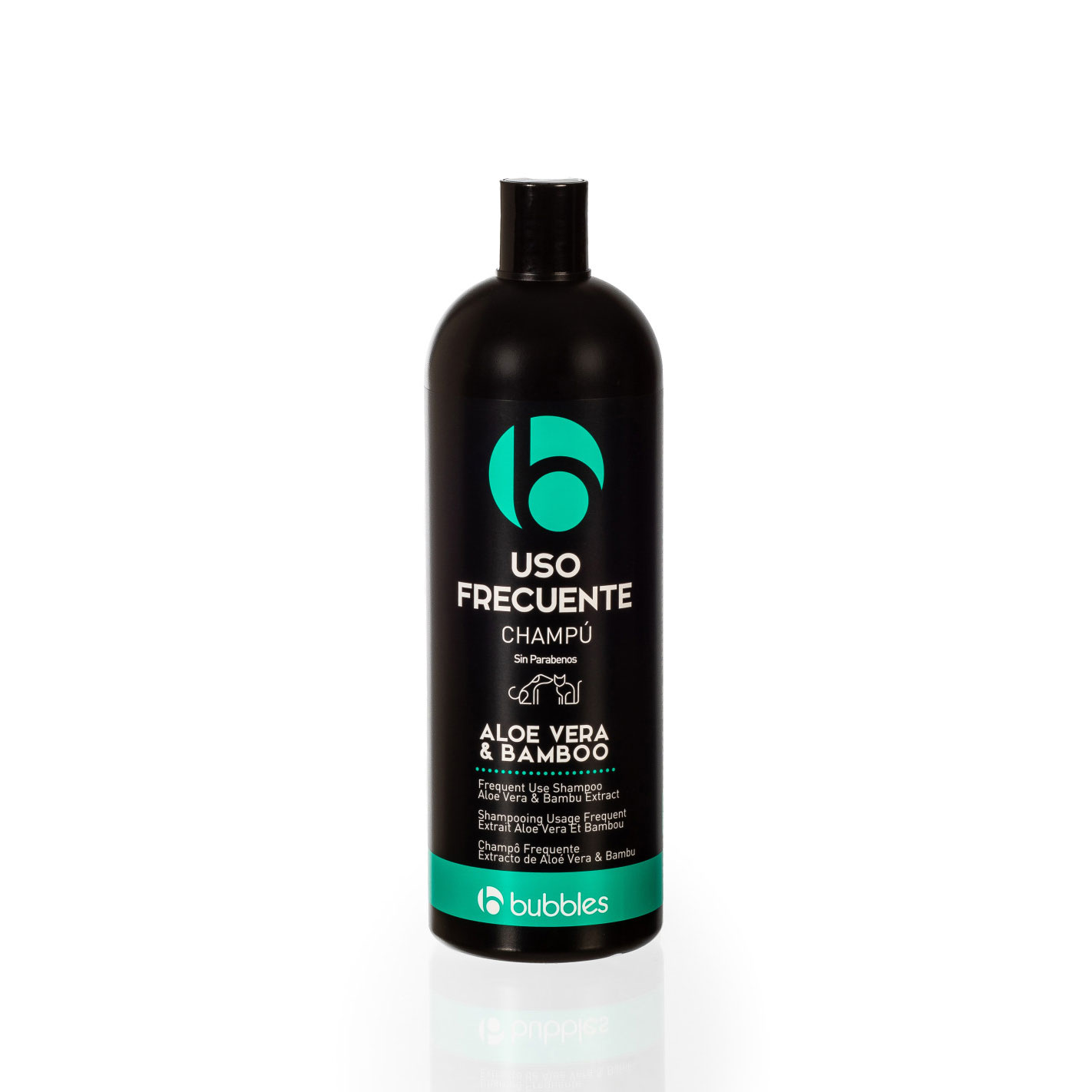 Mantén el pelaje y la piel de tu perro siempre limpios, suaves y saludables con el Champú de uso frecuente BUBBLES con extracto de Aloe Vera y Bamboo, especialmente formulado para mascotas que necesitan baños habituales sin resecar ni irritar su piel.